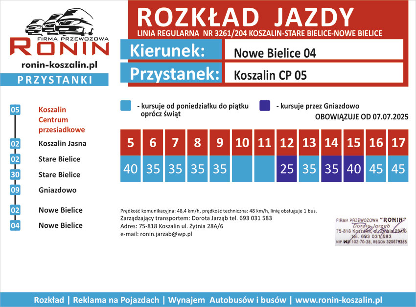 Linia Łazy >>> Mielno CP kursuje do 15…